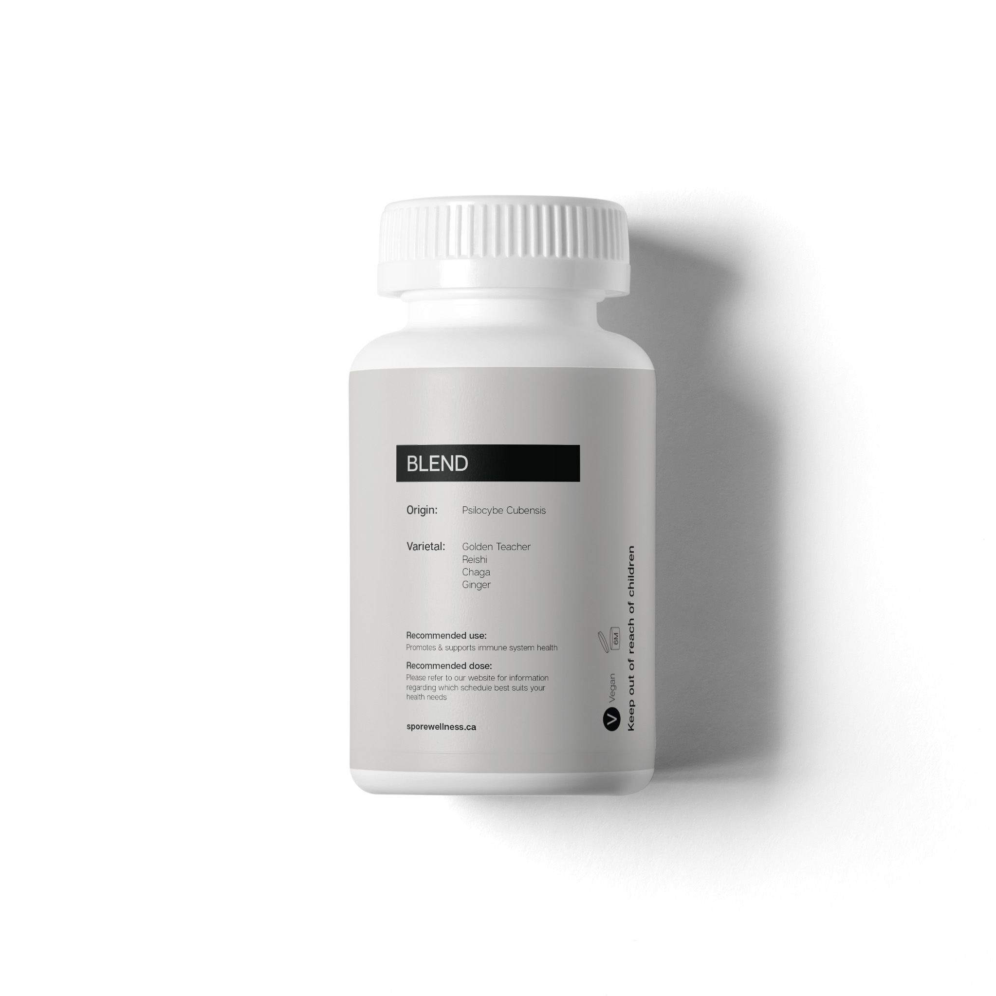 Spore Wellness Immune (SWI) is a blend of Golden Teacher (psilocybe cubensis), Reishi (ganoderma lucidum), Chaga (inonotus obliquus), and Organic Ginger.